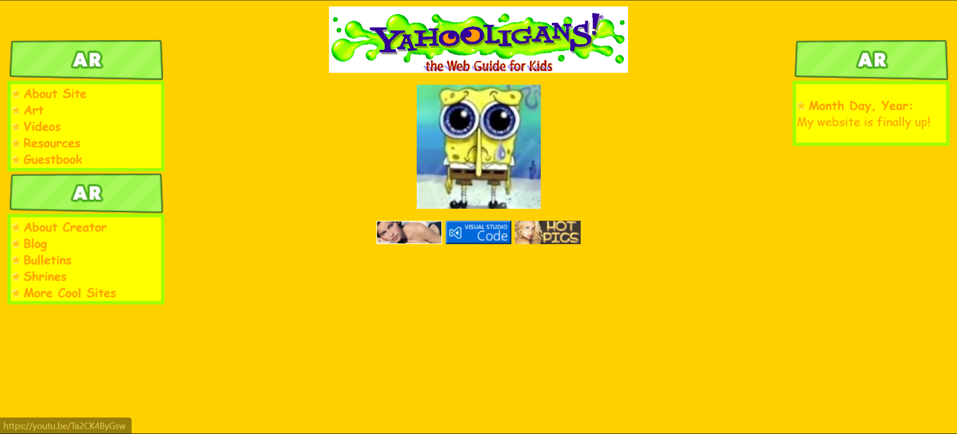 My very first time that I tried my hand at HTML was in 2020 on a website called FriendProject. It’s a MySpace clone created in 2008 WAY before the more popular SpaceHey. What’s great about FriendProject is that it supports actual MySpace layout codes and is basically MySpace, but with a different name. Me, alongside two of my Discord friends, made accounts for funsies. From my memory, my profile’s layout was very yellow and I spent hours just putting stamps from DeviantArt onto my bio. We stopped using the website due to the people behind it being bad and it overall having safety issues. I, however, straight up deleted my profile, which I now regret doing. I wish I didn’t because it would’ve been a great time capsule of 12 year old me. The closest I have to seeing my profile is an archive of a search on the WayBack Machine. Here’s a screenshot.
